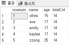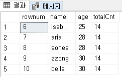 위의 예제와 동일하게 데이터를 5개씩 보여주는 페이징 쿼리를 작성해보자