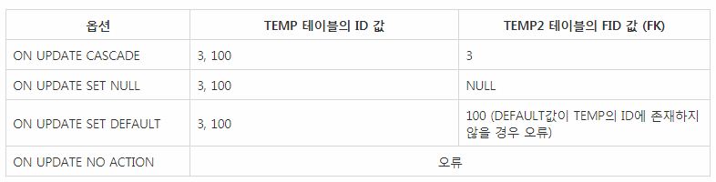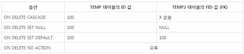 , CONSTRAINT FK_TEMP2_FID FOREIGN KEY (FID) REFERENCES TEMP(ID) 옵션)