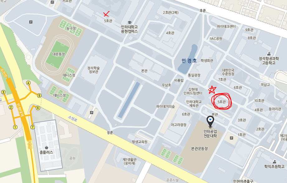 인하대 캠퍼스와 인하공전이 함께 위치해 있다.
