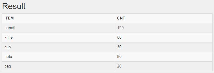 pencil의 CNT값이 120으로 100이 넘기 때문에, 결과는 CNT들의 총합인 300을 반환하게 된다.