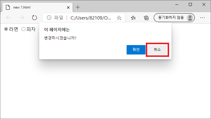 확인을 선택 시 해당 선택 값으로 변경되고, 취소를 선택시 선택 값이 변경되지 않고 기존 값으로 유지된다.