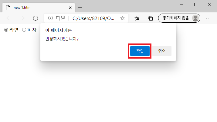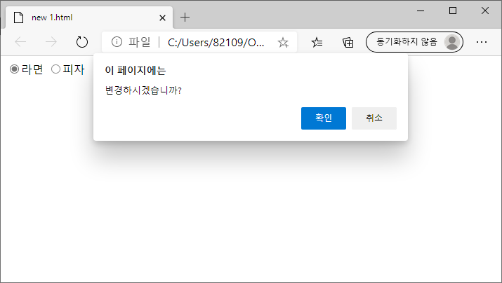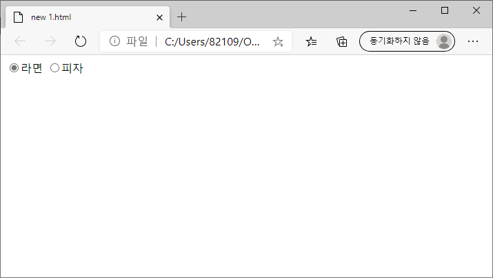 라면/피자 라디오 버튼이 있다.