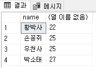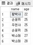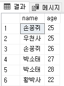 위와 같이 이름과 나이 필드로 구성된 테이블이 있다.