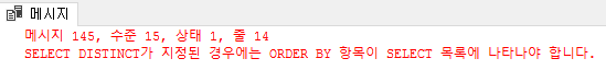 SELECT DISTINCT가 지정된 경우에는 ORDER BY 항목이 SELECT 목록에 나타나야 합니다.