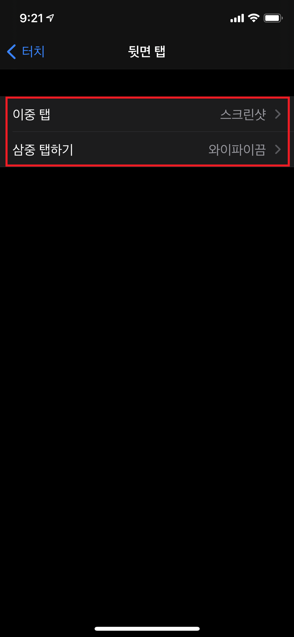 아이폰 iOS14 업데이트 후 뒷면 탭이라는 기능이 생겼다.