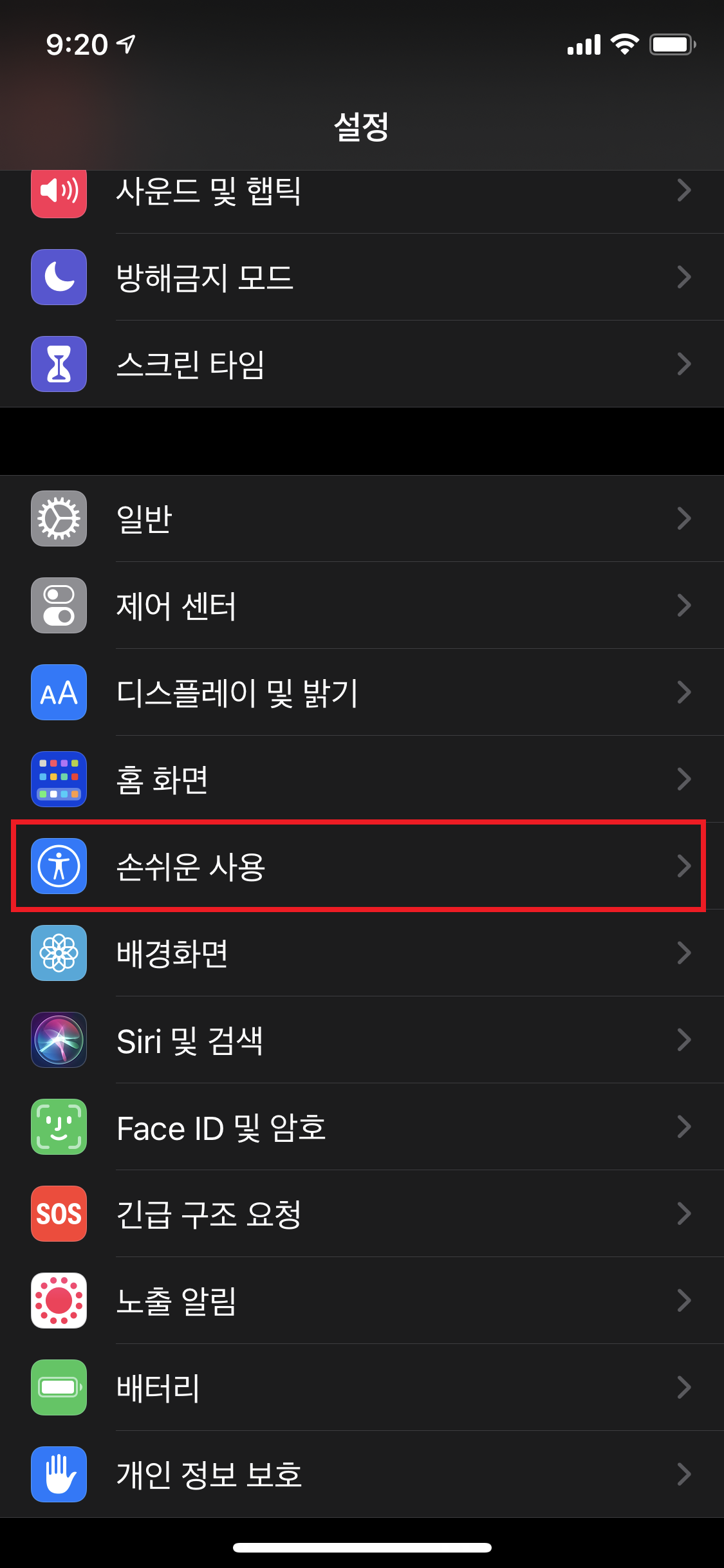 1. 설정 > 손쉬운 사용 선택